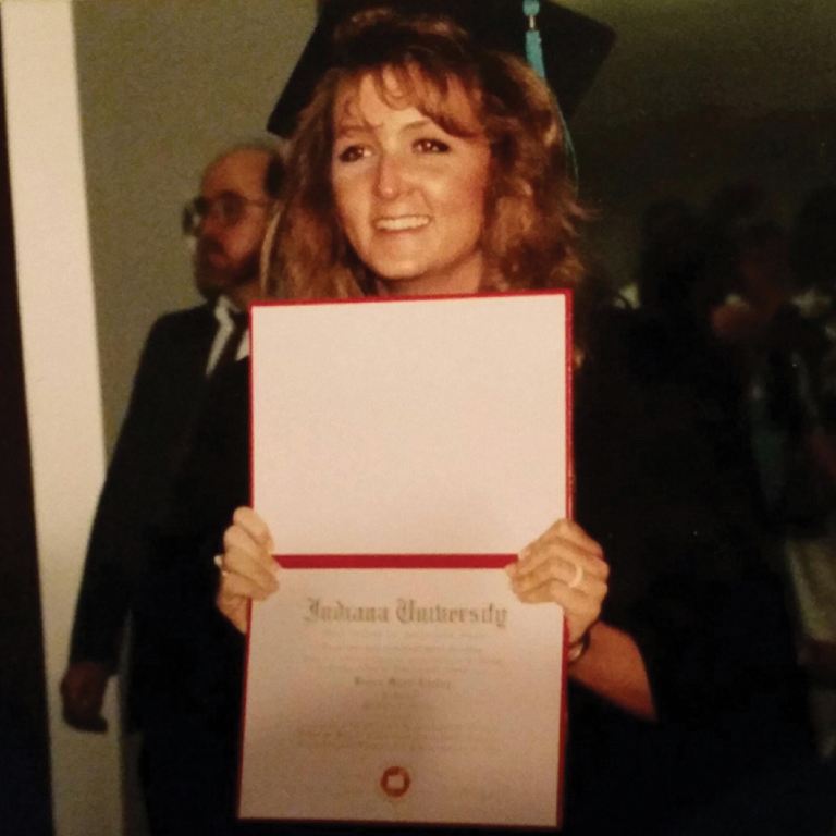 I started my MPA studies at IUPUI in 1995, right after getting married. Our son, Cade, was born in 1997, so I took a leave from my MPA studies, as I was a full-time employee, supervising the criminal division courts clerks office in the City-County Building, and I had a newborn. My husband volunteered to do an active duty Army tour after 9/11 and we ended up stationed overseas and lived in Italy (with the 173rd airborne), then in England, then Fort Bragg, North Carolina, and finally Fort Carson, Colorado. During these years of moving and working—primarily for the Department of Defense in different civilian jobs—I always missed working in the judiciary. In 2013, I was given a unique opportunity to become the first Veterans Trauma Court Coordinator for the 4th Judicial District in Colorado Springs, Colorado. My boss pushed me to finish my MPA. I reached out to the advisors at the O’Neill School and they did an amazing job digging through old records and going over the faxed documents I had kept to help me get re-enrolled. I only needed four classes to finish, but now classes could be completed virtually! I was motivated by my employer, but I was more determined to finish MY degree before my son. Remember Cade? That newborn, who I took a “break” from school to raise in 1997? He got a full scholarship to attend the Kelley School of Business at IU in 2015. I was not going to let the kid beat me to graduation! I finished my MPA in December 2018. It took me 23 years to complete my MPA, but it was worth the time and I learned so much. Besides still being the VTC coordinator in Colorado Springs, a national peer training court, I am also now an adjunct faculty member for Justice for Vets. I help stand up and provide training to vet courts around the country. The O’Neill School is a wonderful place to learn problem-solving skills. The staff are dedicated and persistent. They helped an “old school” alum finish her degree. Hoosiers never give up! (Graduation picture from my B.S. at IU in 1991.)