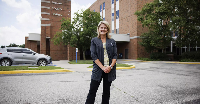 Erin Mullin, vice president of human resources at Putnam County Hospital, used the online Master of Science in Healthcare Management program to develop innovative solutions for rural healthcare—applying her studies to real-world projects that improve community access and patient support.